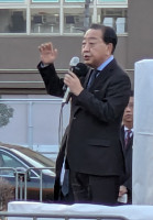演説する中道の野田共同代表
