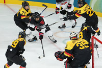 ディフェンスする志賀紅ら 五輪