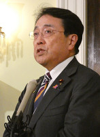 取材に応じる赤沢経産相