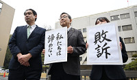 「敗訴」と掲げる原告側