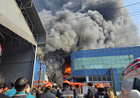 黒煙が上がる韓国の自動車部品工場