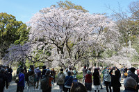 六義園のシダレザクラが見頃