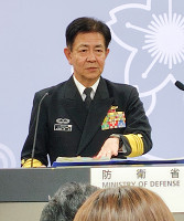 記者会見する海上幕僚長