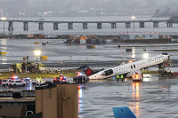 衝突した機体と消防車