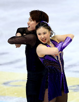 演技する吉田、森田組 世界フィギュア