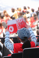 歓声に応える坂本 世界フィギュア