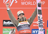 トロフィーにキスするアントネッリ