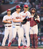 マウンドに集まる広島ナイン プロ野球