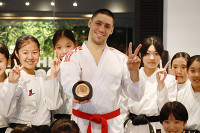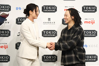 握手する高木と平野歩