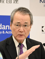 記者会見する日銀大阪支店長