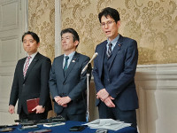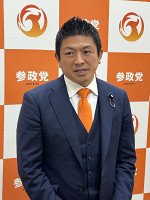 取材に応じる参政・神谷代表