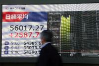 日経平均株価を示すモニター