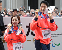 「りくりゅう」ら、感謝のパレード=ミラノ・コルティナ五輪・パラ