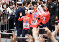 日本橋パレード、声援に感謝=ミラノ・コルティナ選手団