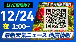 【ライブ】最新天気ニュース・地震情報 2025年12月24日(水) 1:00〜/〈ウェザーニュースLiVE〉