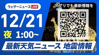 【ライブ】最新天気ニュース・地震情報 2025年12月21日(日) 1:00〜/〈ウェザーニュースLiVE〉