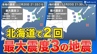 【地震情報】北海道根室半島南東沖で最大震度3の地震が2回続けて発生 いずれも津波の心配なし