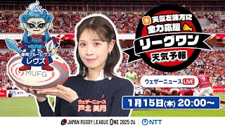 【ライブ】天気を味方に全力応援!「リーグワン天気予報」ゲスト:静岡ブルーレヴズ 2026年1月15日(木)20:00〜 NTTジャパンラグビー リーグワン2025-26企画 出演:戸北美月
