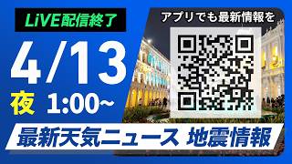 【ライブ】最新天気ニュース・地震情報 2026年4月13日(月) 1:00〜/〈ウェザーニュースLiVE〉
