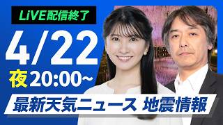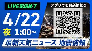 【ライブ】最新天気ニュース・地震情報 2026年4月22日(水) 1:00〜/〈ウェザーニュースLiVE〉