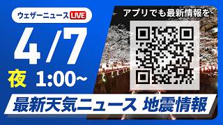 【ライブ】最新天気ニュース・地震情報 2026年4月7日(火) 1:00〜/〈ウェザーニュースLiVE〉