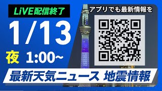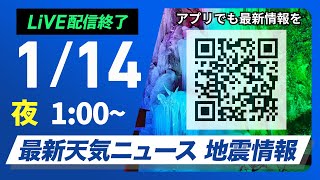 【ライブ】最新天気ニュース・地震情報 2026年1月14日(水) 1:00〜/〈ウェザーニュースLiVE〉