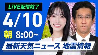【ライブ配信終了】最新天気ニュース・地震情報 2026年4月10日(金)/〈ウェザーニュースLiVEモーニング・岡本結子リサ/山口剛央〉
