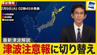 【津波情報】津波警報は津波注意報に切り替え 海岸には近づかないで