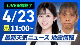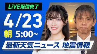 【ライブ】最新天気ニュース・地震情報 2026年4月23日(木)/ 西日本・東日本は本降りの雨 〈ウェザーニュースLiVEコーヒータイム・青原桃香/芳野達郎〉北海道・三陸沖後発地震注意情報発表