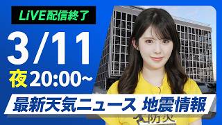 【ライブ】最新天気ニュース・地震情報 2026年3月11日(水)晴れてスギ花粉の飛散に注意 空気はひんやり〈ウェザーニュースLiVEコーヒータイム・田辺真南葉 /内藤邦裕〉防災DAY