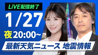 【ライブ配信終了】最新天気ニュース・地震情報 2026年1月27日(火) /日本海側は雪の強まりに注意〈ウェザーニュースLiVEムーン・戸北美月/宇野沢達也〉