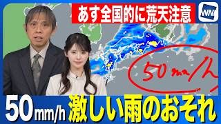 【大雨情報】あすは荒天注意 1時間に50mm以上の激しい雨のおそれ
