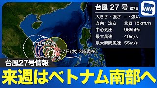 【台風27号最新情報】南シナ海でほとんど停滞 来週はベトナム南部に接近か(27日3時現在)