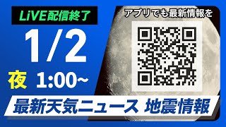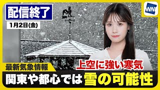 【ライブ】最新天気ニュース・地震情報 2026年1月2日(金)/関東では雪雲が急発達の可能性〈ウェザーニュースLiVEイブニング・戸北美月/山口剛央〉