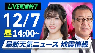 【ライブ】最新天気ニュース・地震情報 2025年12月7日(日) 関東以西では15℃超えて小春日和に〈ウェザーニュースLiVEアフタヌーン・魚住茉由/森田清輝〉