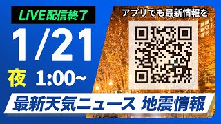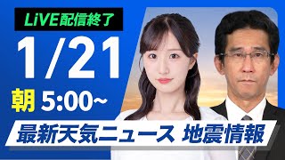 【ライブ】最新天気ニュース・地震情報 2026年1月21日(水) 1:00〜/今季最強の寒波襲来 日本海側は大雪に警戒を〈ウェザーニュースLiVE〉