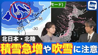 【明日の雪情報】北日本や北陸は積雪急増や吹雪に注意