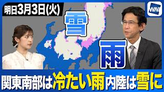 【雨雪情報】関東南部は冷たい雨 北部は遅い時間ほど雪になりやすい