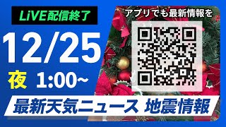 【ライブ】最新天気ニュース・地震情報 2025年12月25日(火) 1:00〜/雨のクリスマス 北陸から山陰は荒天のおそれ〈ウェザーニュースLiVE〉