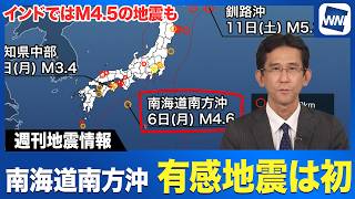 【週刊地震情報】南海道南方沖でM4 6の地震 この震央名の有感地震は初