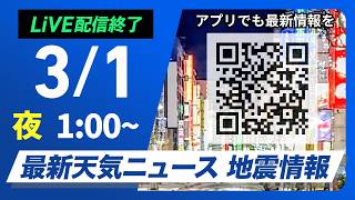 【ライブ】最新天気ニュース・地震情報 2026年3月2日(月) 1:00〜/〈ウェザーニュースLiVE〉