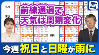 【雨情報】今週は天気が周期変化 あす祝日と日曜が雨に