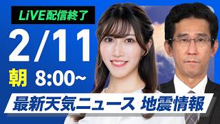 【ライブ】最新天気ニュース・地震情報 2026年2月11日(水) /建国記念の日は広範囲で雨や雪 太平洋側は空気潤う〈ウェザーニュースLiVEサンシャイン・魚住茉由/山口剛央〉