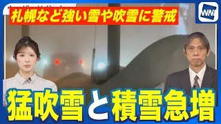 【吹雪】札幌市など雪が強まり積雪急増 今夜にかけて強い雪や吹雪に警戒