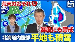 【荒天のおそれ】北海道は平地でも雪 暴風にも警戒