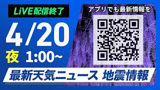 【ライブ】最新天気ニュース・地震情報 2026年4月20日(月) 1:00〜/〈ウェザーニュースLiVE〉