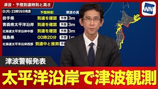 【津波警報】北海道・青森県・岩手県に発表 太平洋沿岸各地で津波観測