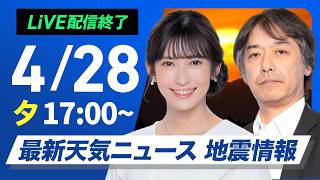 【ライブ】最新天気ニュース・地震情報 2026年4月27日(月) /東北南部は傘の出番 関東はにわか雨注意〈ウェザーニュースLiVEイブニング・戸北美月/芳野達郎〉