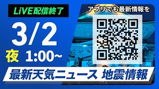 【ライブ】最新天気ニュース・地震情報 2026年3月2日(月) /西日本は段々と雨に 東海や関東も雲が広がる〈ウェザーニュースLiVEイブニング・駒木結衣/本田竜也〉