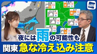 【あすの関東】急な冷え込みに注意! 夜は「雨」の可能性も